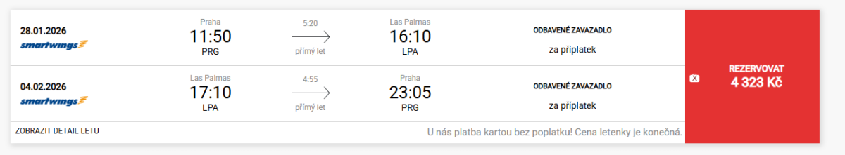 Smartwings is offering the latest bargain tickets to Gran Canaria with direct flights from Prague. There are only a few January dates left.
