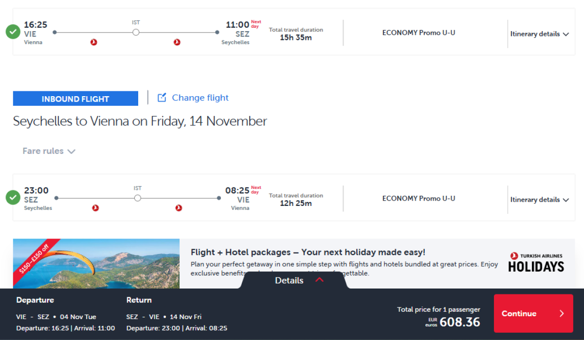 To the Seychelles with Turkish Airlines from Vienna from November to March