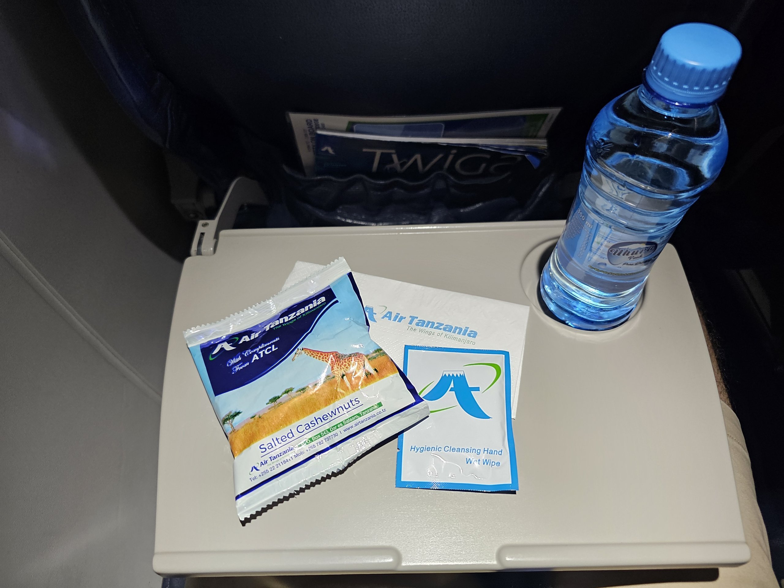 On domestic flights within Tanzania you will get water and a small sweet or savoury snack.