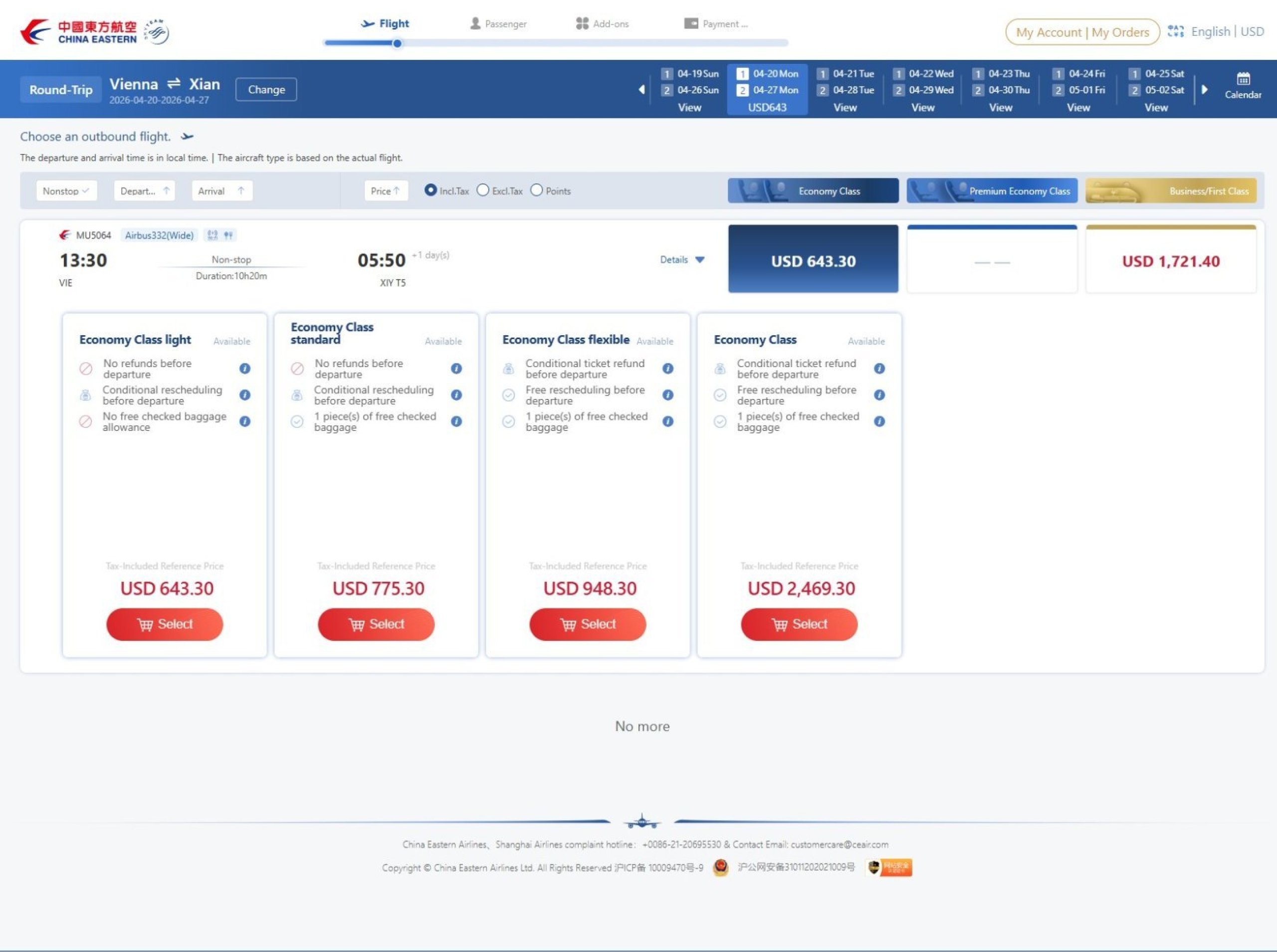 And China Eastern will start flying between Vienna and Xi'an on April 20.