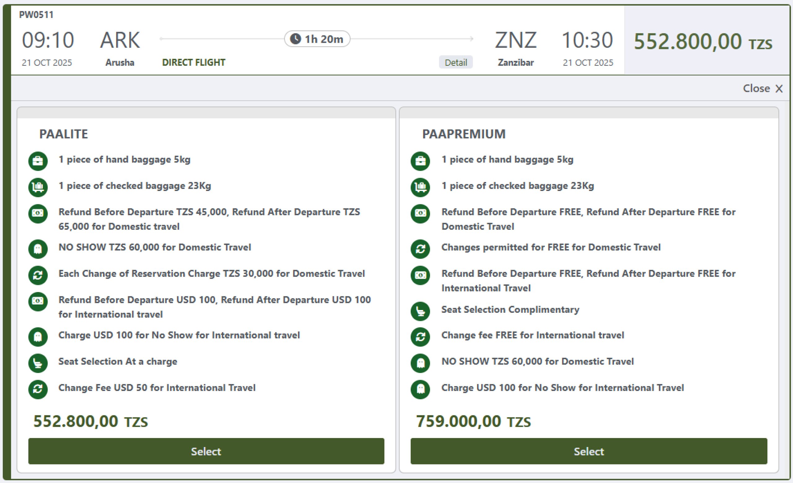As Precision Air has competition from other airlines on many routes in Tanzania, it is worth comparing prices via flight comparators.