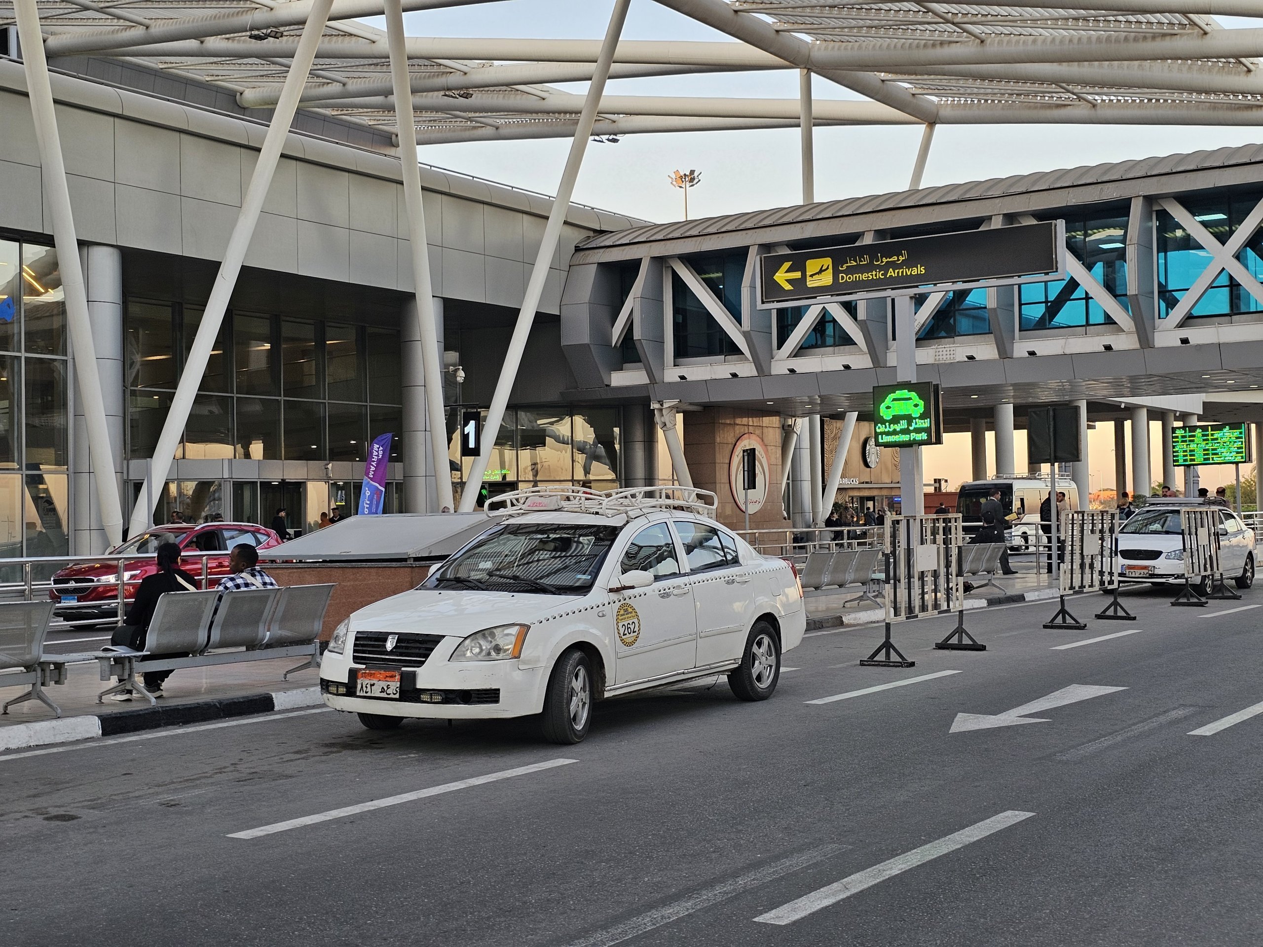 Official white taxis are ubiquitous at the airport and within Cairo at all hours of the day and night.