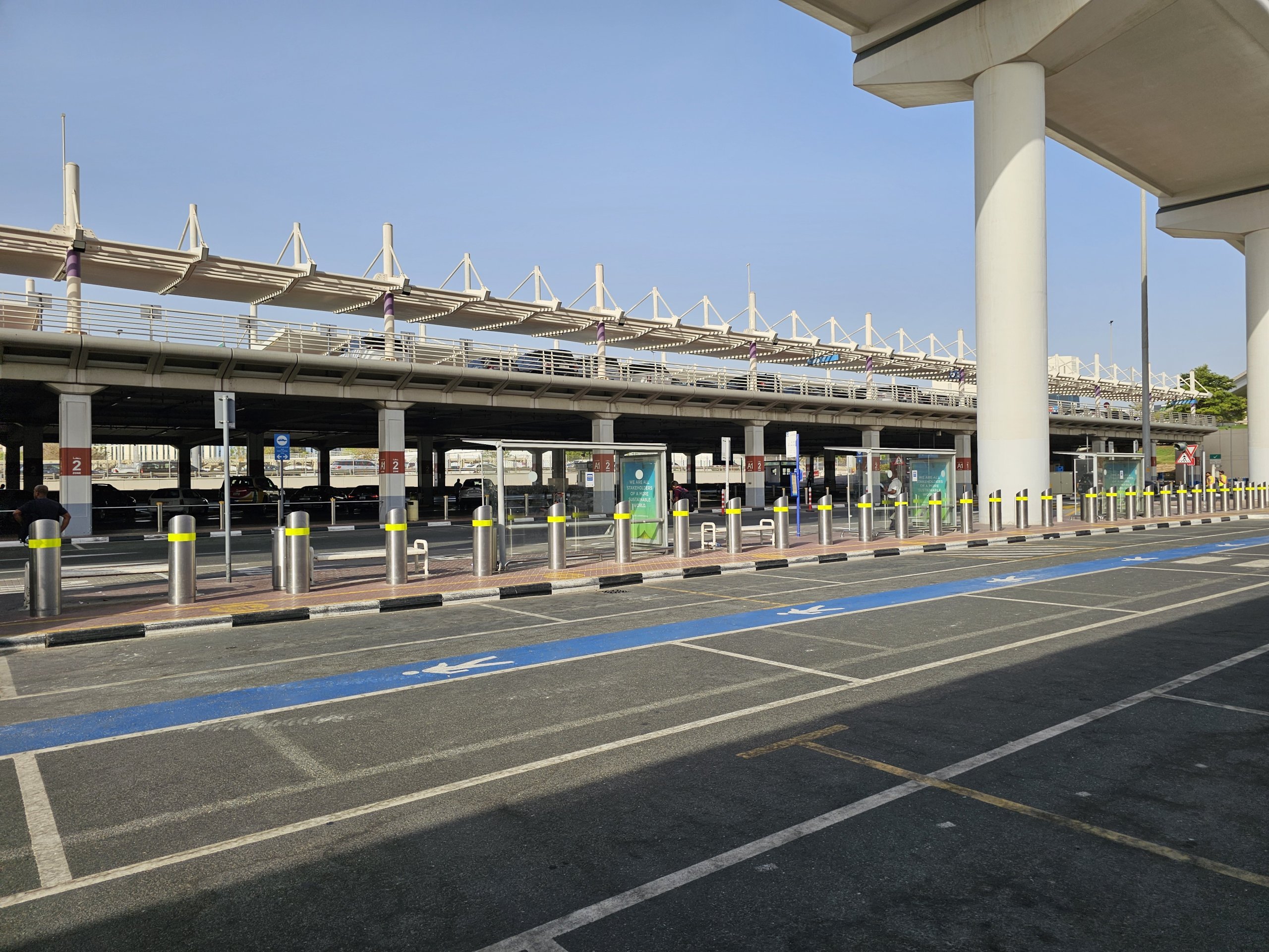 Bus stops are approximately 150 metres from the terminal on the departure level. You have to go out first, go through the garage building and early check-in and then turn left.
