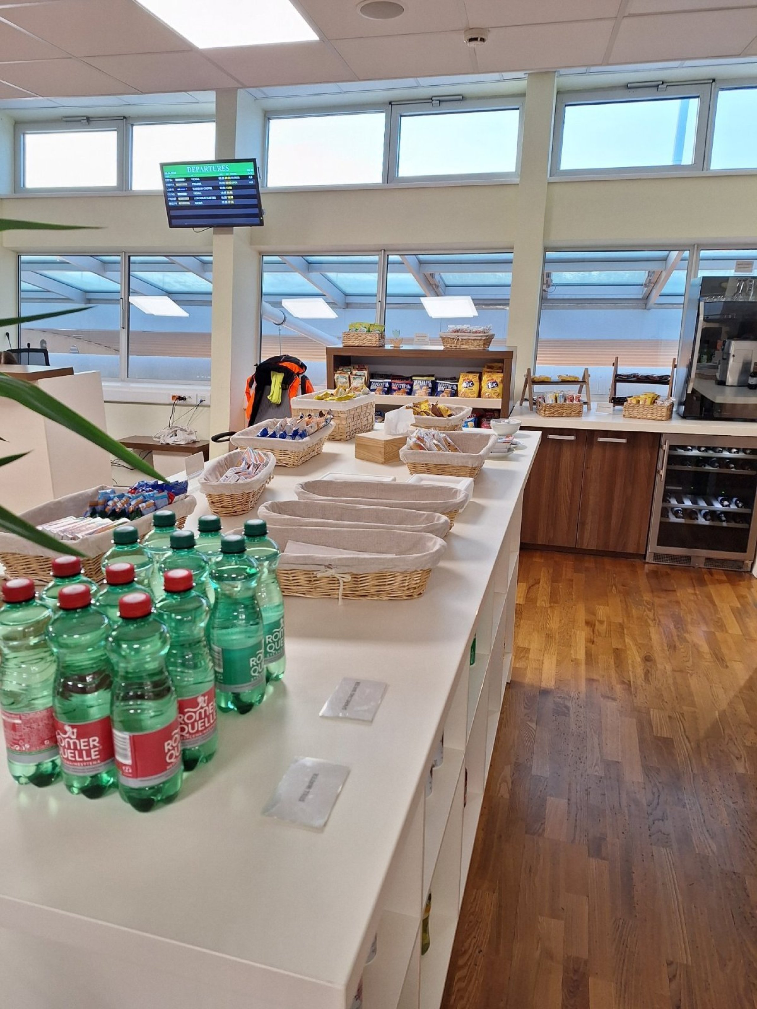 The lounge here opens at 3:30 most of the week for the first morning flights. I'm alone in it before 7am, comfortable, spacious, plenty of snacks, a selection of soft drinks plus beer, wine, spirits. No fresh food. They write down entries by hand on paper, I'm the sixth guest this month on PP:)