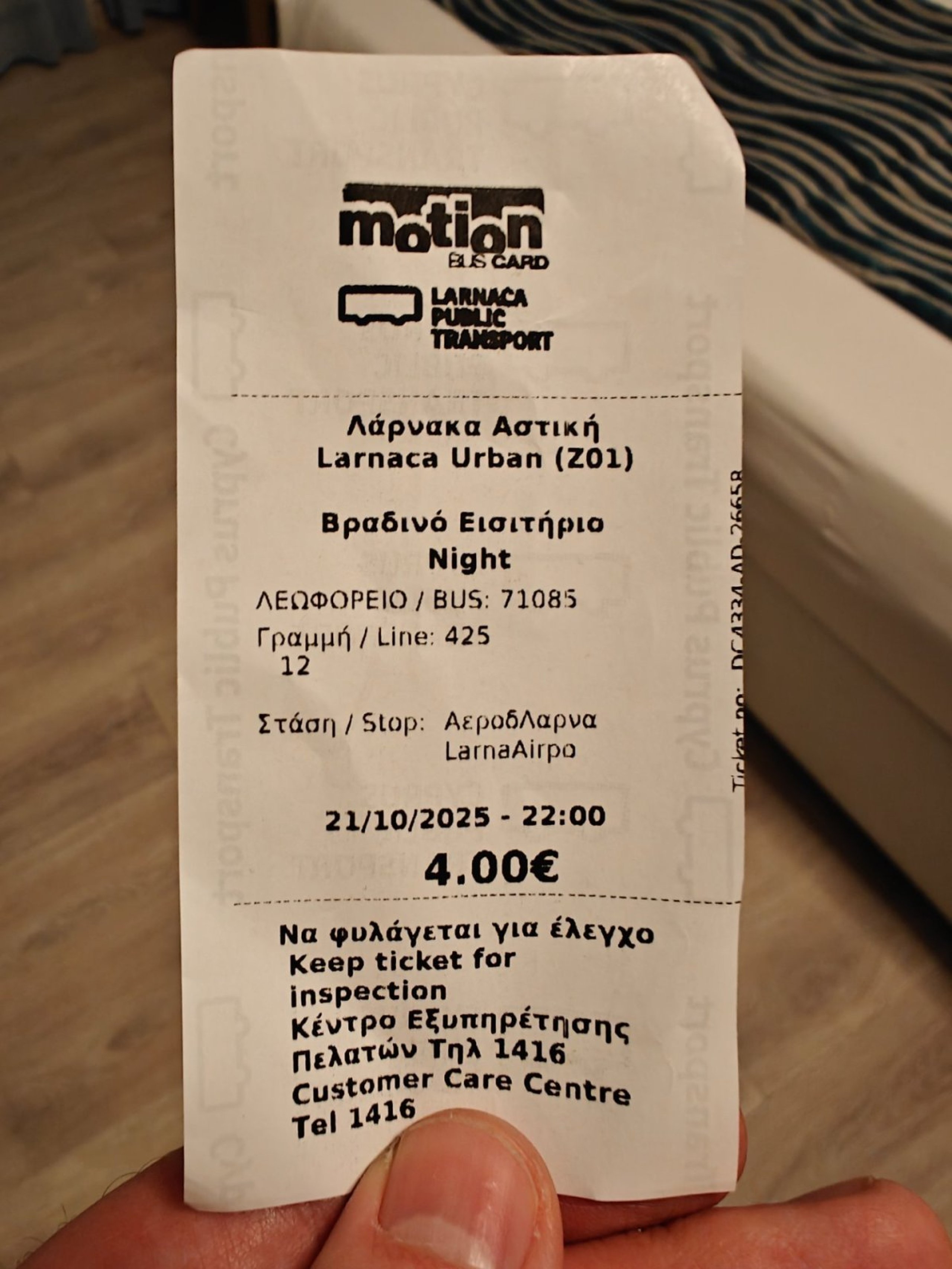 - 2,40 eur - 1 ride anywhere on Larnaca public transport (non-transfer ticket)