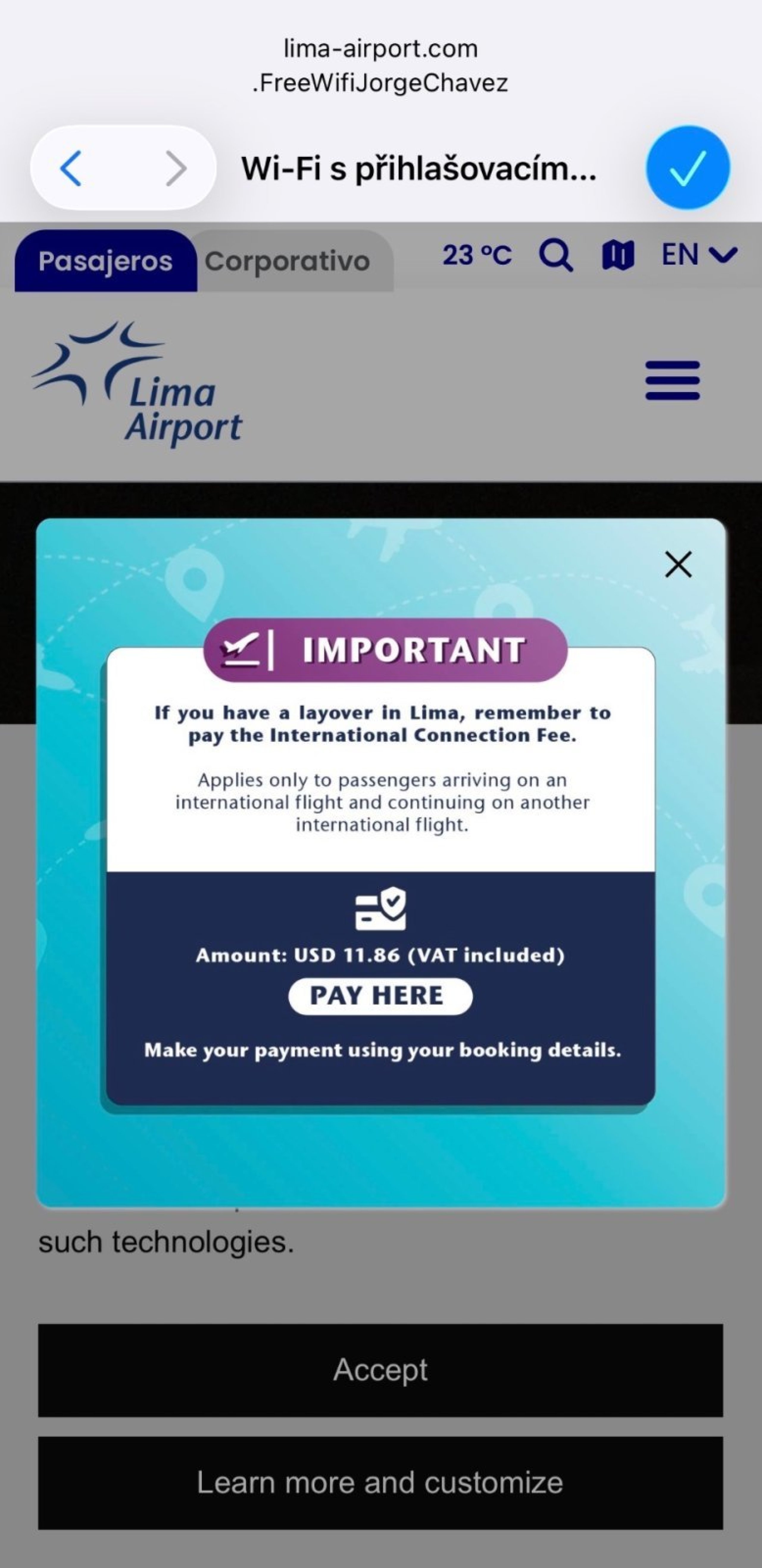 Unfortunately, the Lima airport (LIM) is charging a transit fee (TUUA) of USD 11.86 from connecting flights from 7.12.2025.