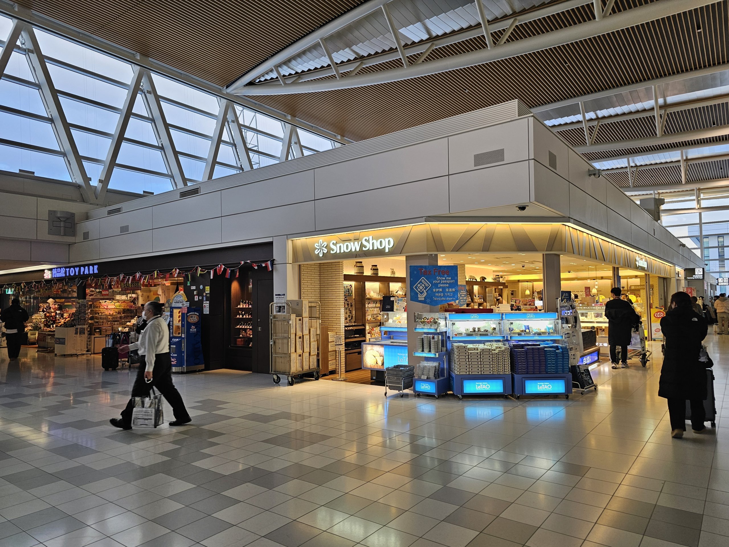 The large shopping arcade, where you can also find a Uniqlo branch, is located in the passage between the domestic and international terminals, in the public area.