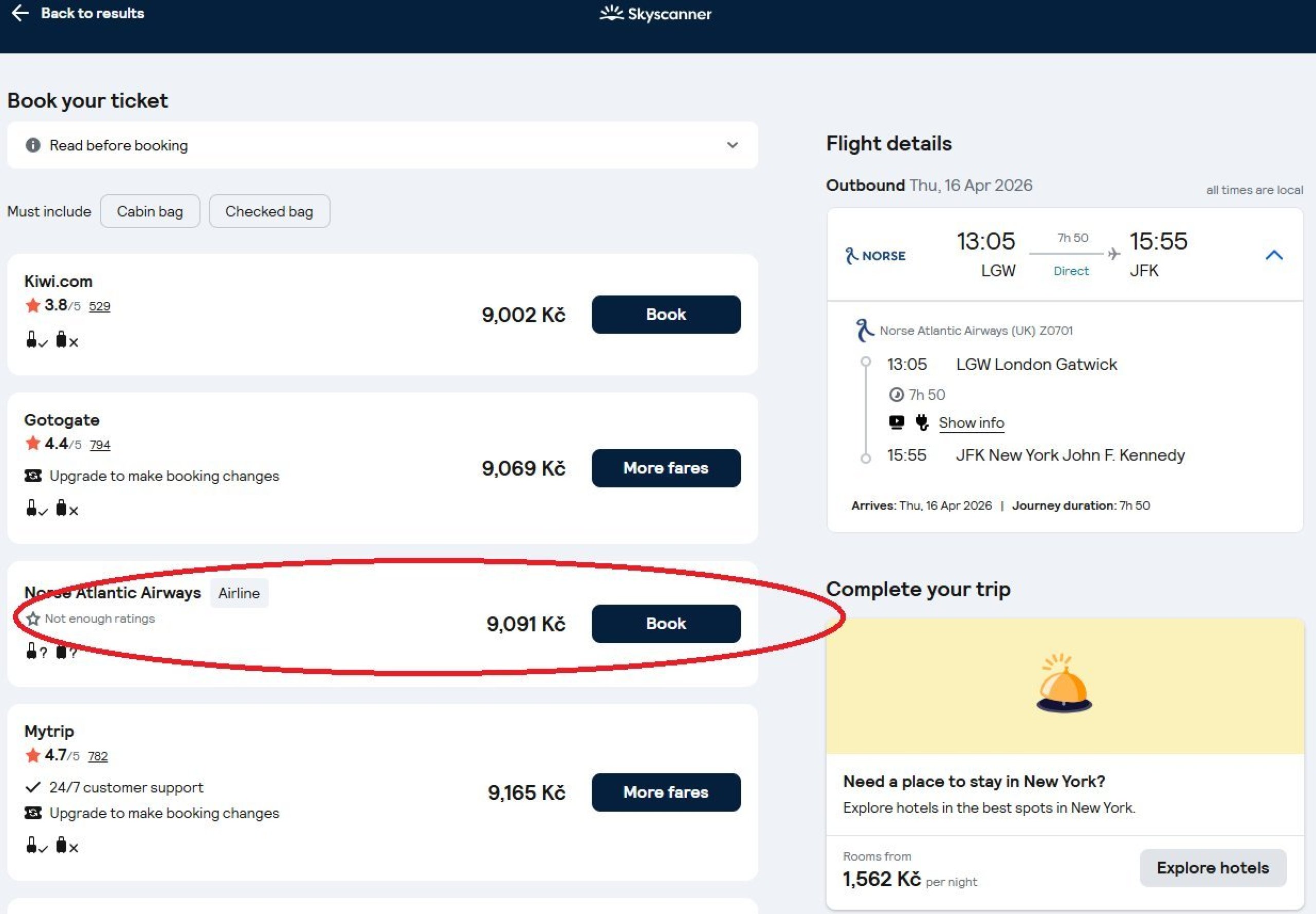 So the overall experience depends largely on where you actually buy the ticket - which retailer you click through to from Skyscanner.