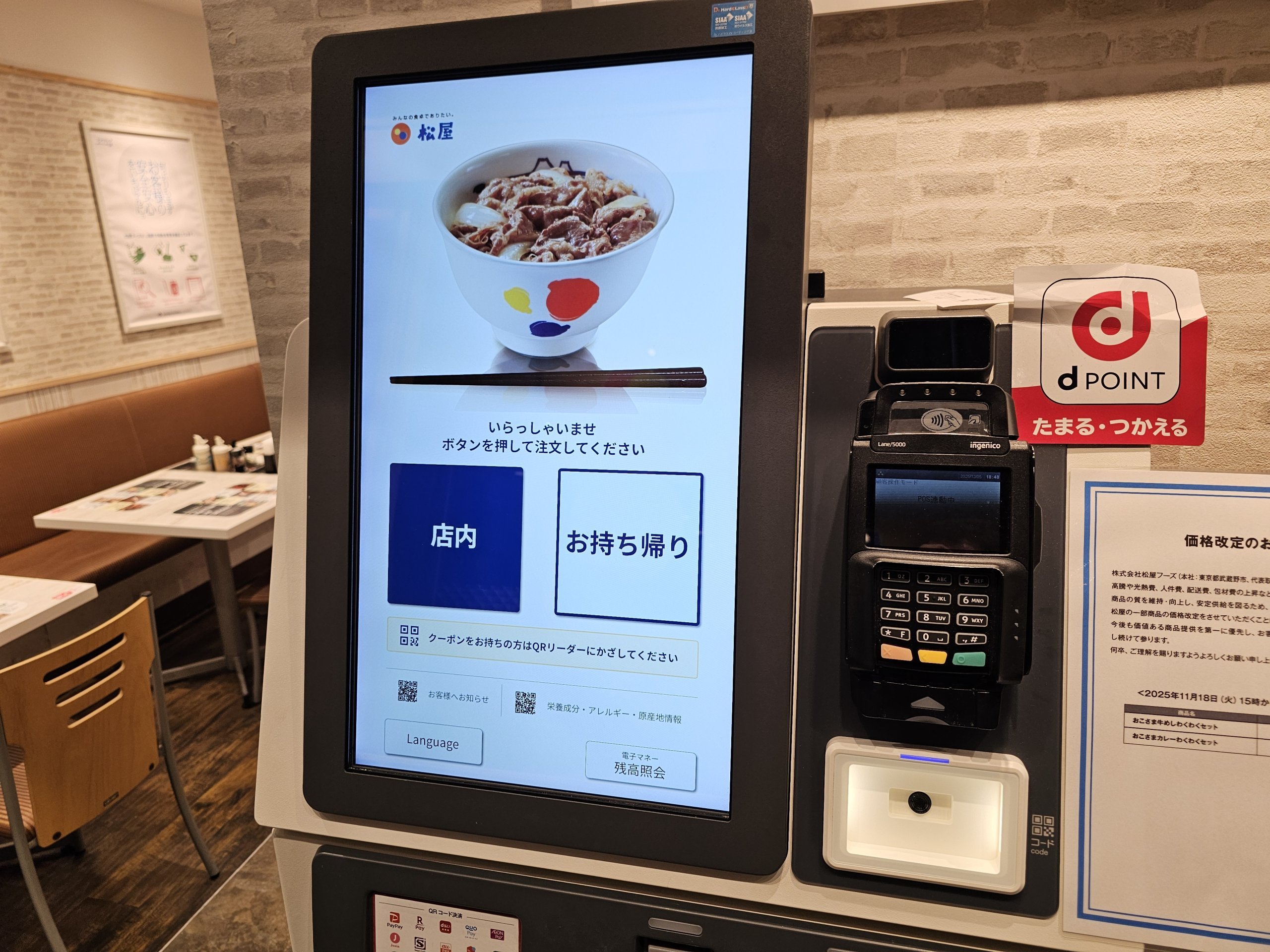 At these eateries, you order through a self-service machine, where you pay (usually you can pay with a card) and wait with a slip with your order number.