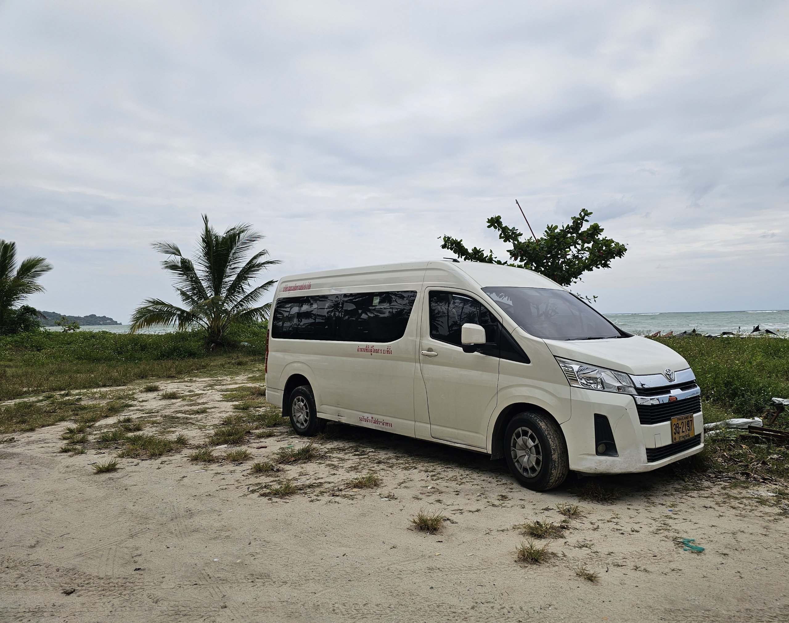 The minivan with driver arrives in front of our hotel reception exactly on time.