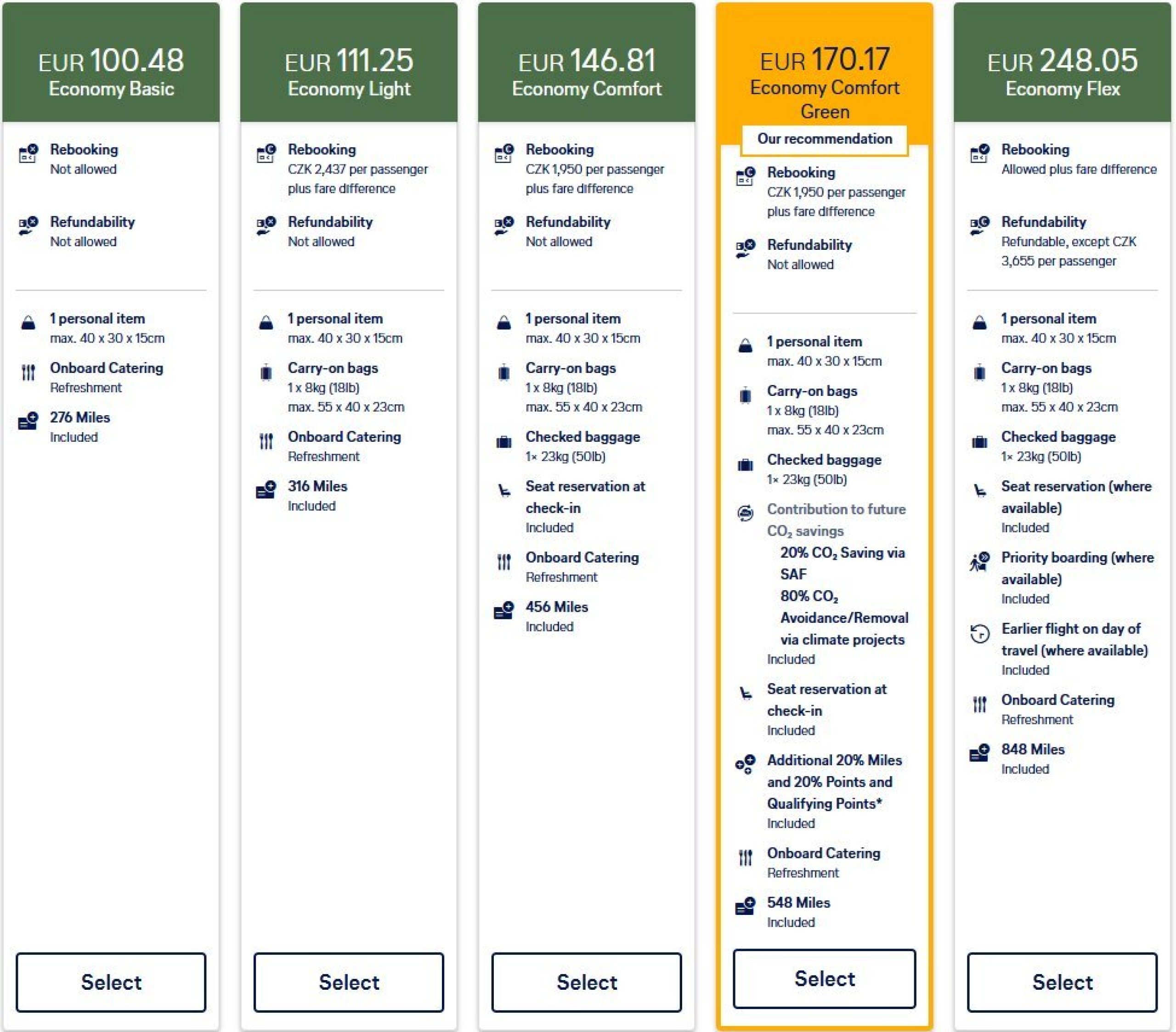 I'm taking an example flight from Prague to Frankfurt on the route I use the most. Random date, one-way flight: