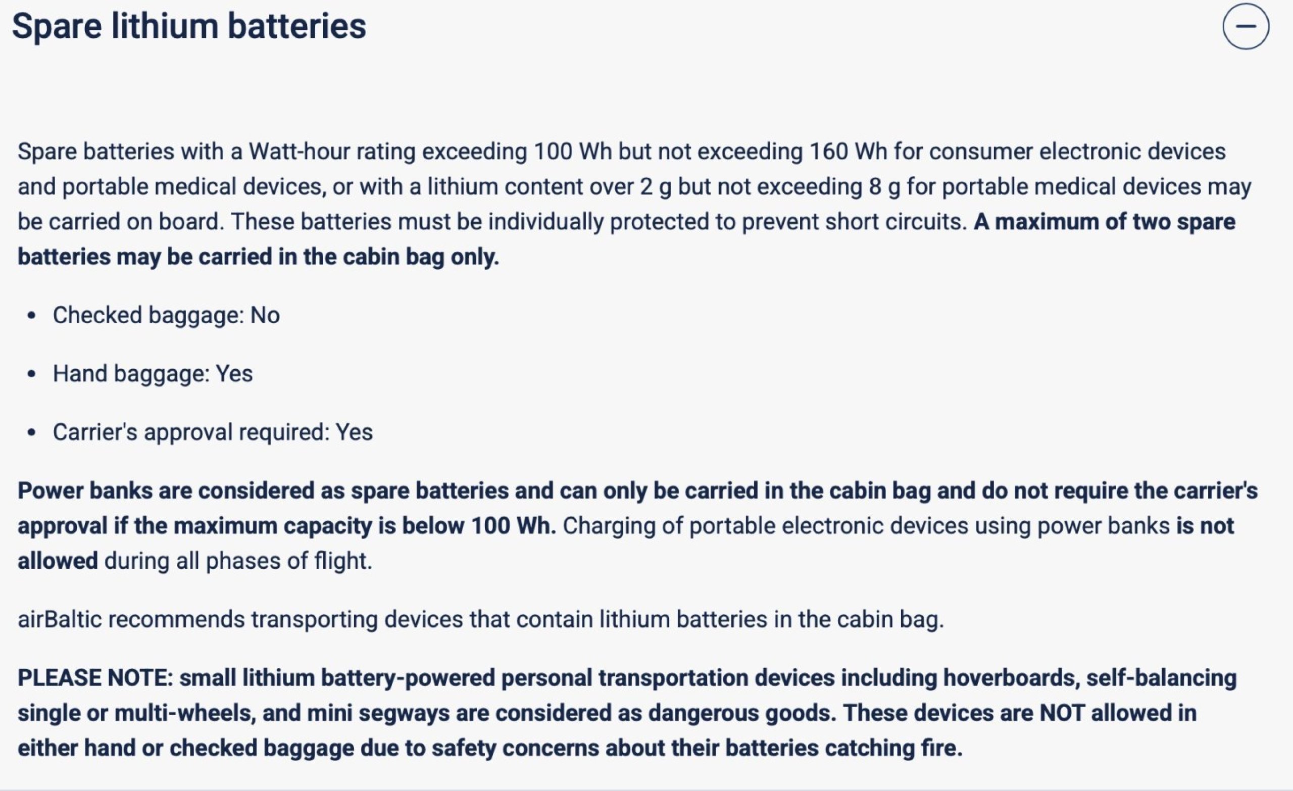 airBaltic also prohibits the use of in-flight power banks: https://www.airbaltic.com/en/bag...strictions