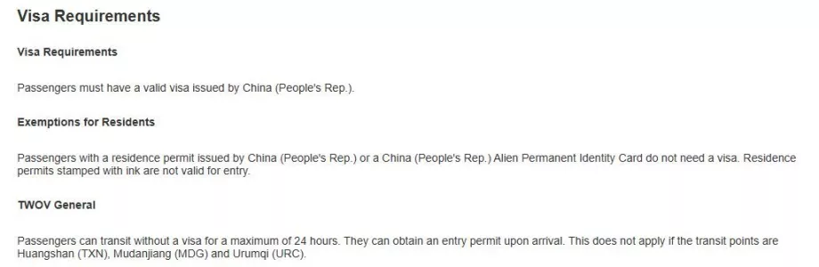 - China visa required