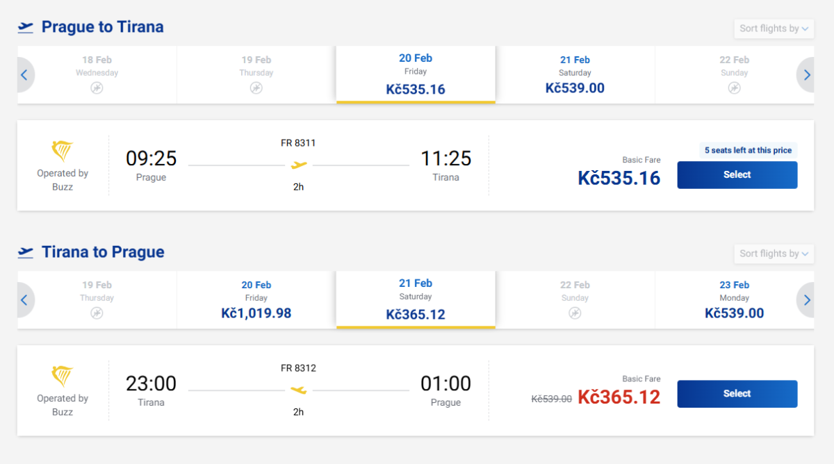 Take a quick trip to Albania in winter. Ryanair has round-trip tickets from Prague to Tirana on offer that are good value for one night. Friday's 9:25am departure and Saturday's 11:00pm return will give you plenty of time to explore the city.