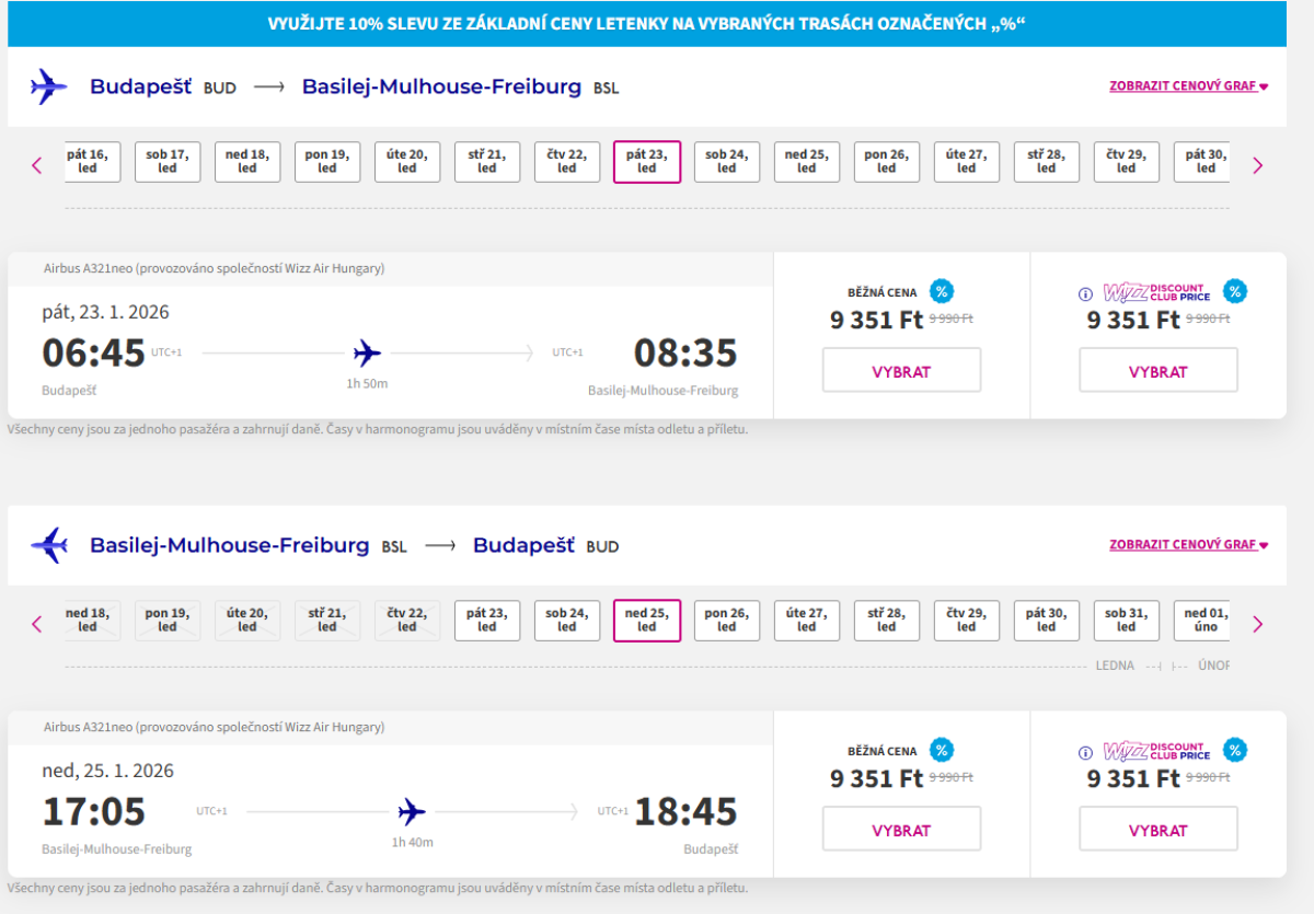 From Budapest you can travel to Basel, Switzerland with Wizz Air. Dates are available from January to March and the choice is really wide - they fly every day.