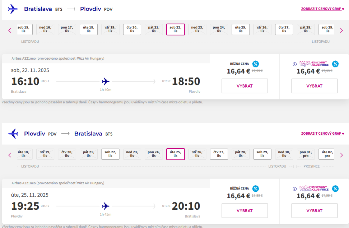 With Wizz Air you can travel to the Bulgarian cities of Plovdiv and Varna during the winter. Return tickets from Bratislava to both Plovdiv and Varna can be purchased for 33 eur - this time also for WDC members at the same price.