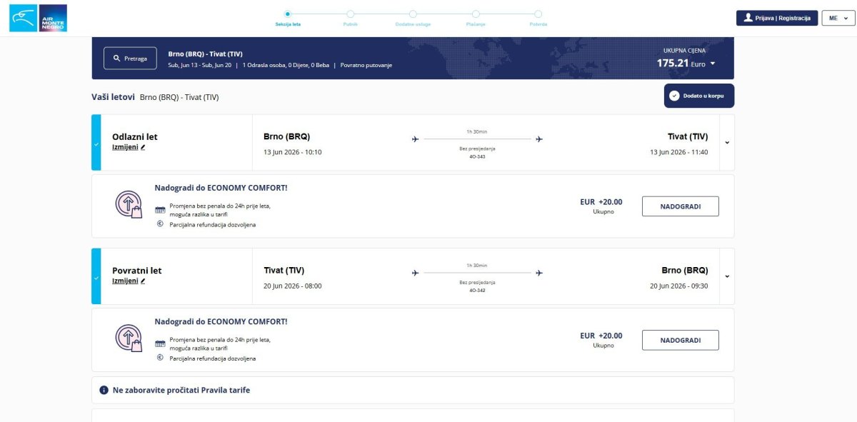 Flights to Podgorica are also available for similar prices, both from Brno and Prague, but only for a few dates.