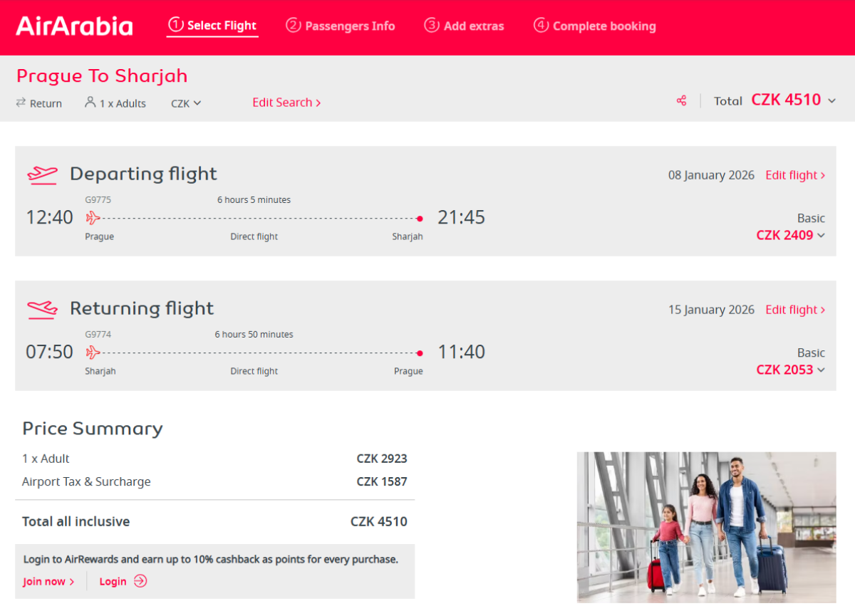 Air Arabia is once again offering discounted return tickets from Prague to Sharjah for  185 eur.