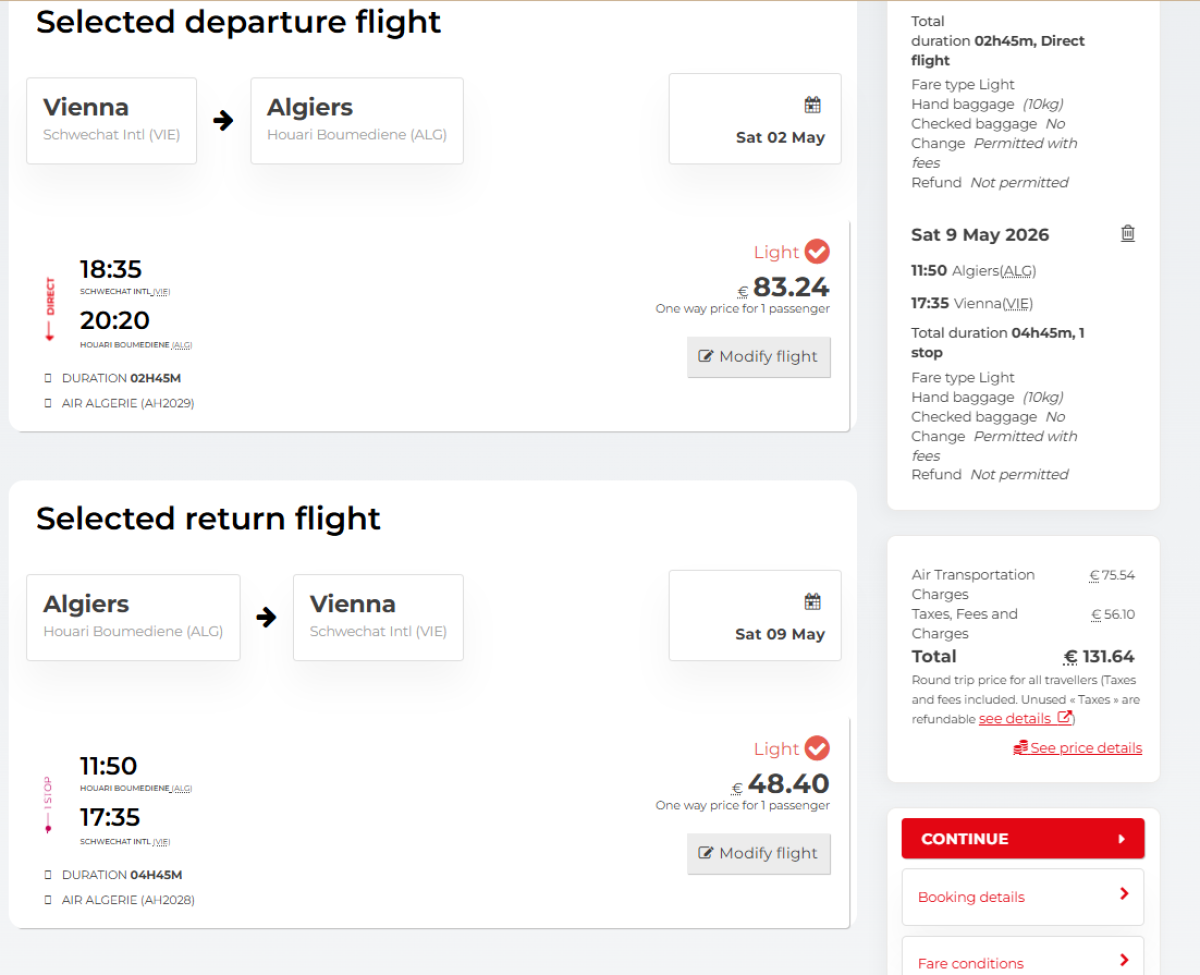 Algeria's national airline, Air Algérie, is currently offering promotional direct flights from Vienna to Algiers. Return tickets can be purchased for as little as 132 eur between the end of March and June.