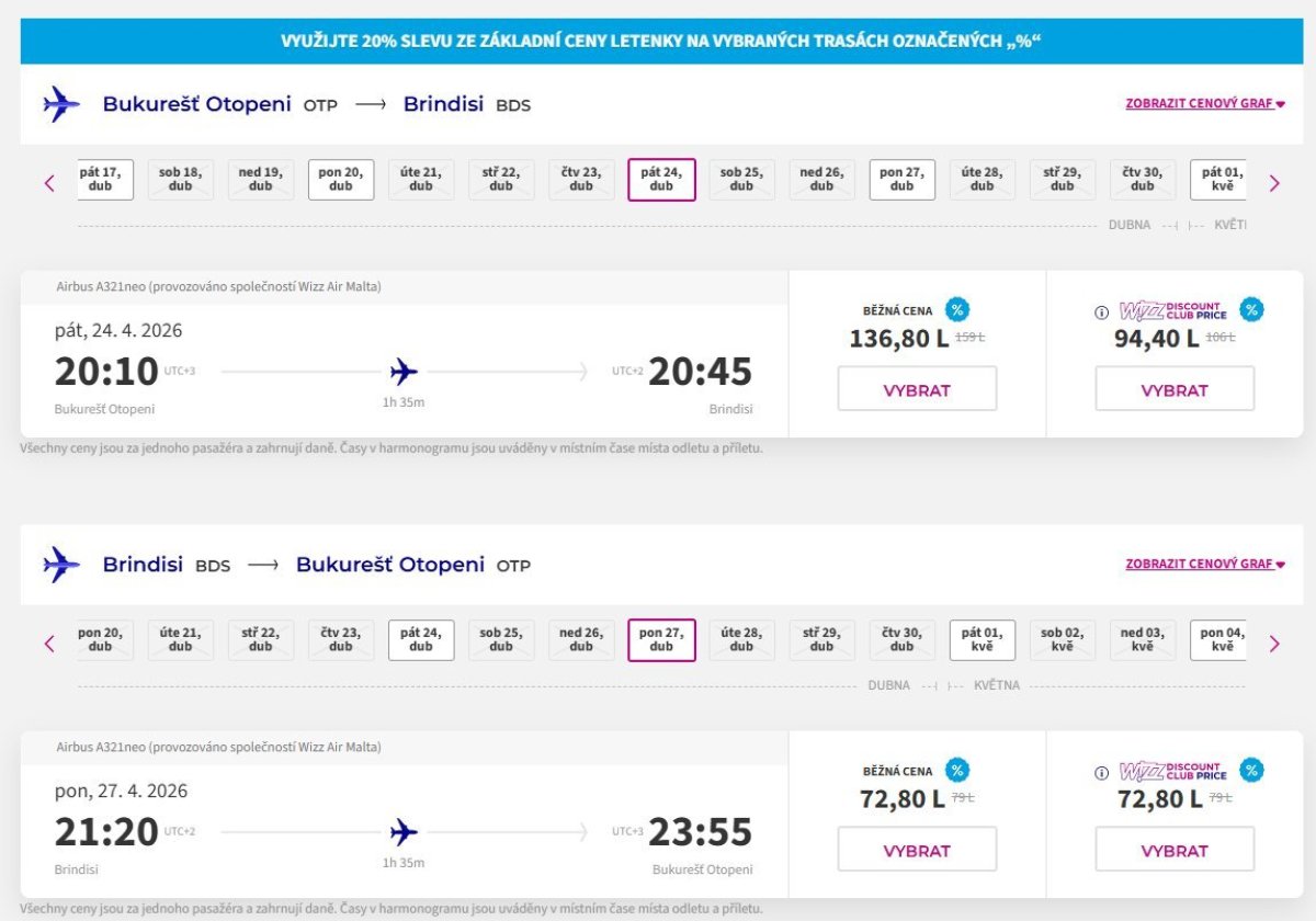 The departure from Bucharest is always on Friday at 20:10, and the return flight from Brindisi is on Monday at 21:20, so you won't have to get up early and make the most of the weekend.
