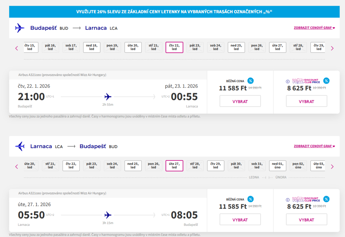 You can get return tickets for 23 169 huf, Wizz Discount Club members for 17 249 huf.