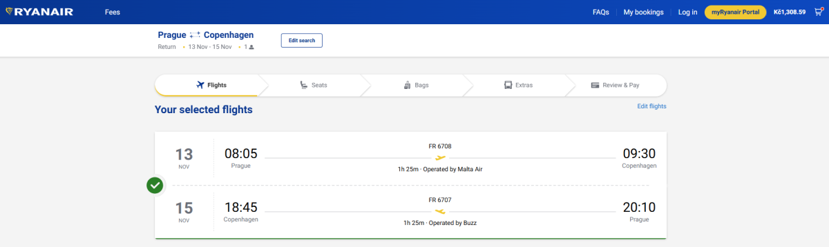 You will be flying with the following airlines: Ryanair