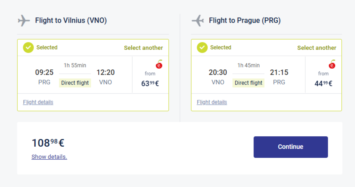 There are a range of dates to choose from across the period, including the popular Friday to Sunday long weekends. For example, take advantage of the Friday morning departure from Prague at 9:25am and return from Vilnius on Sunday evening at 8:30pm.