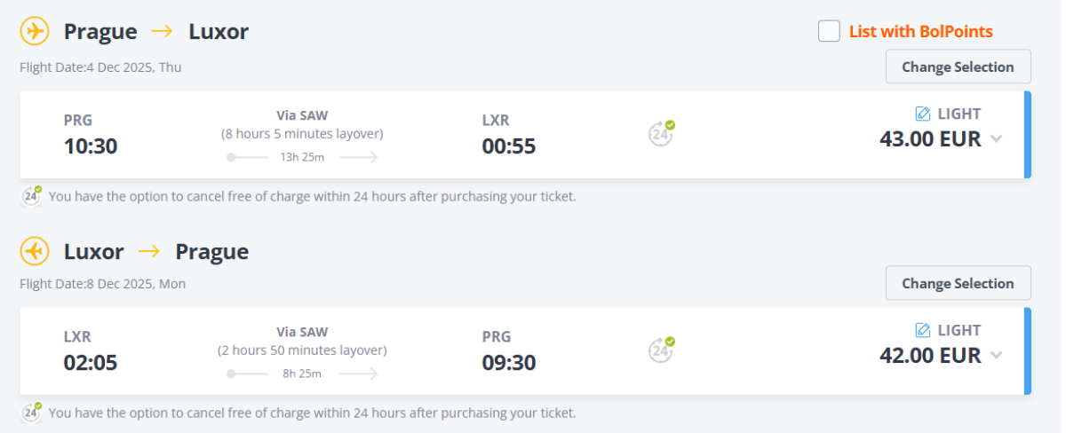 From Prague to Luxor and Marsa Alam from November to March