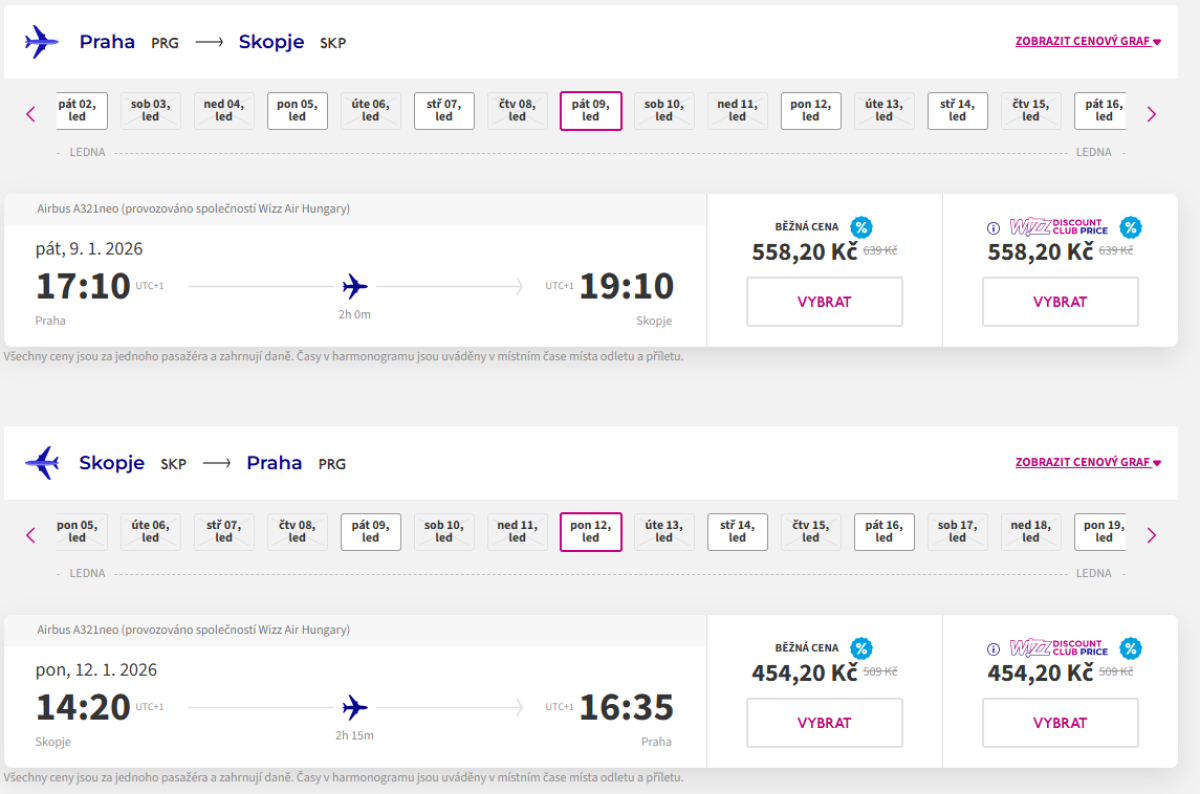 Return tickets from Prague during January for 42 eur, and this time for the same price for WDC members.