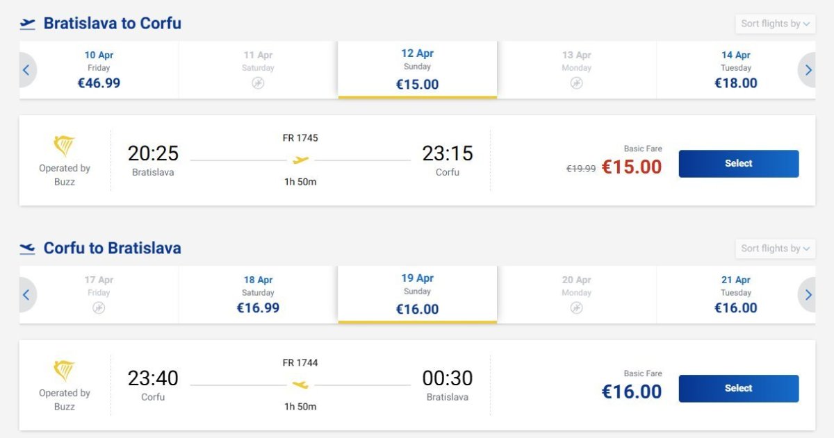 You can get to Corfu in Greece very cheaply with Ryanair from Bratislava in spring.