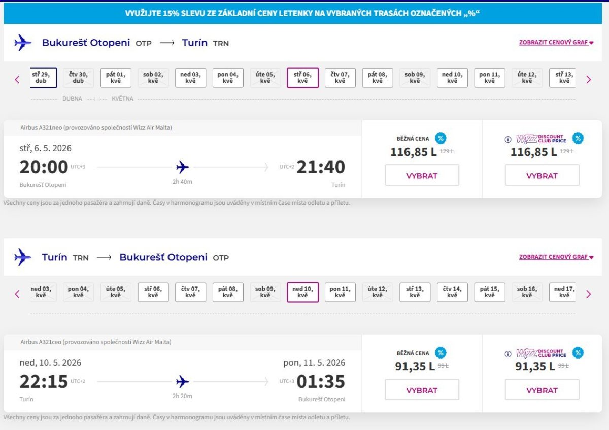 Low-cost airline Wizz Air is offering discount tickets from Bucharest to Turin, Italy.