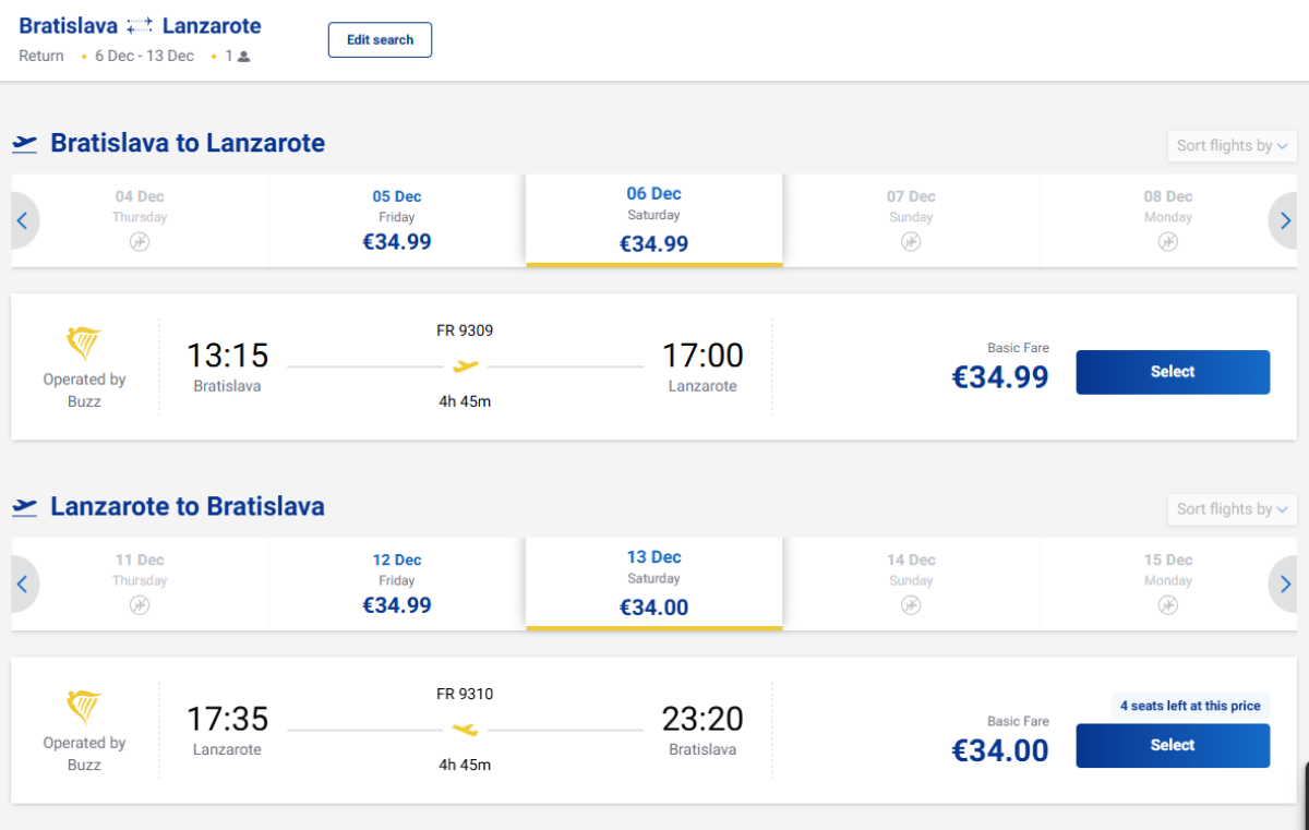 Prices start at 69 eur from Bratislava and 70 eur from Vienna.