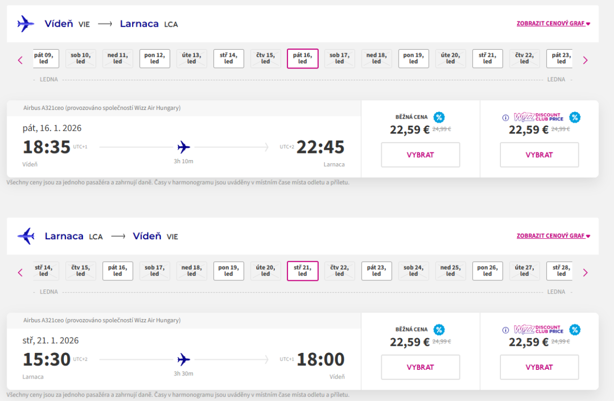 From Vienna, you can take a trip to Larnaca with Wizz Air in January at great prices - the perfect choice for those who want to soak up some sun in the middle of winter.