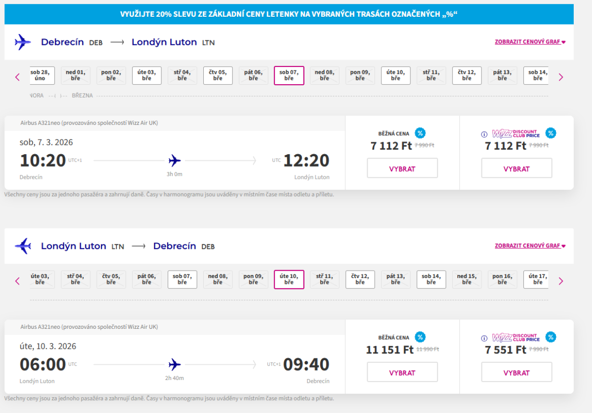 From Debrecen you can fly on Tuesdays, Thursdays and Saturdays, return tickets are available at 18 263 huf, with WDC at 14 663 huf.