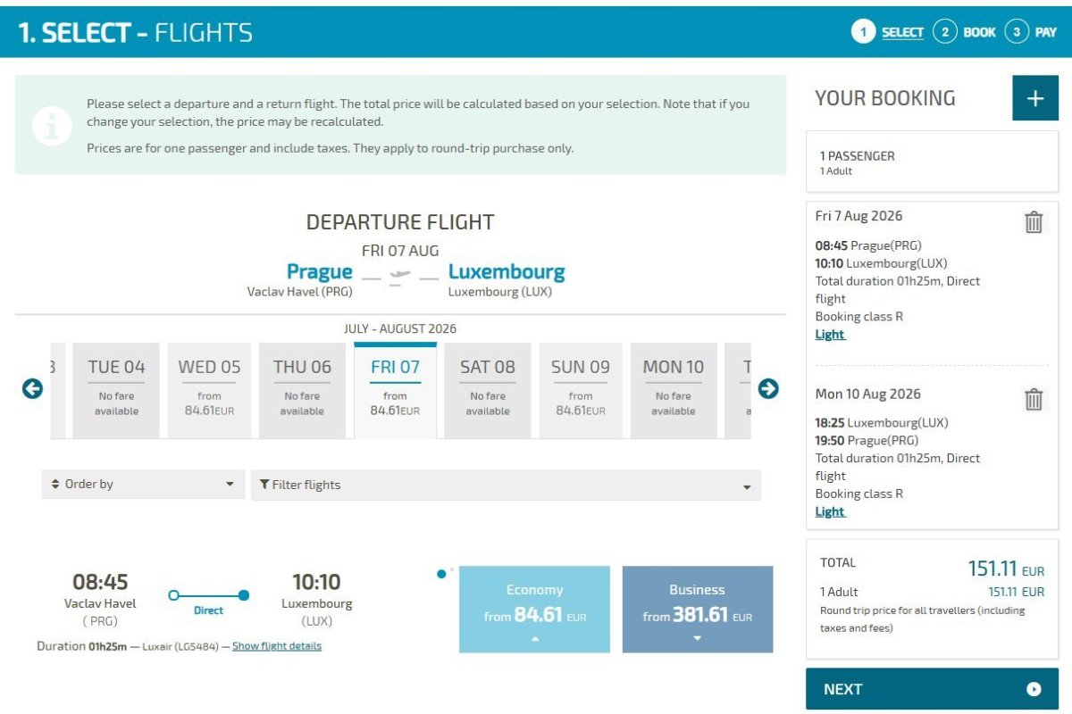 Luxembourg carrier Luxair is currently offering cheap tickets from Prague to Luxembourg for 151 eur.