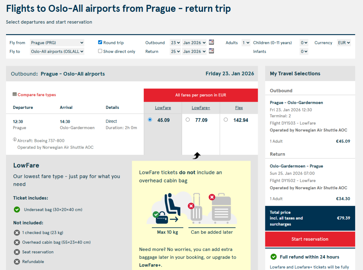 Plan your winter trip to Oslo with Norwegian. Return tickets from Prague to Oslo can be purchased for 79 eur even for long weekends, for example Friday to Sunday, between January and March.