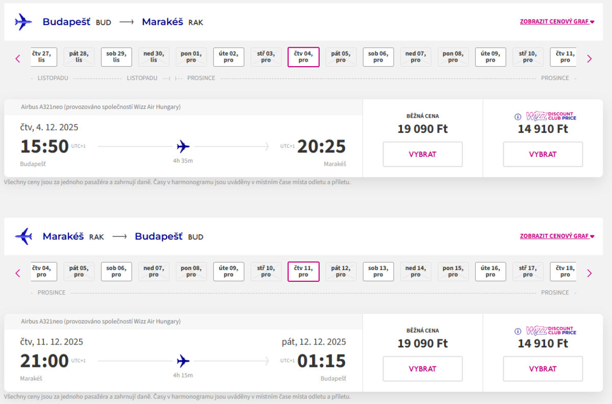 From November until February, Wizz Air is offering return tickets from Budapest to Marrakech for 38 180 huf.