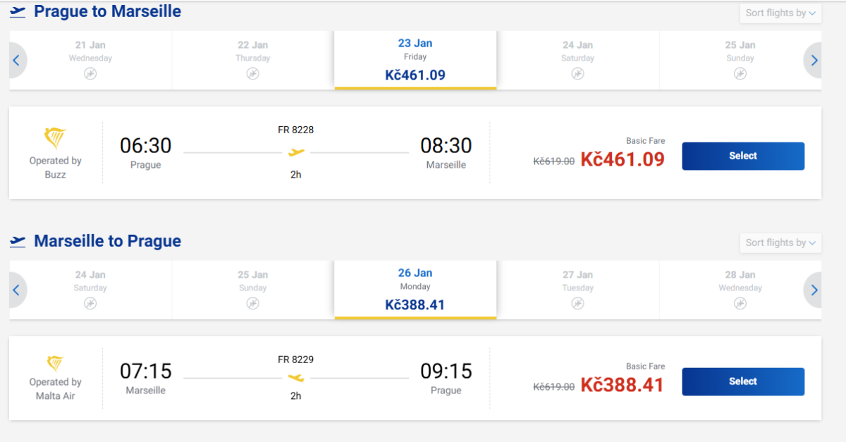 Return tickets are currently available from Prague to Marseille with Ryanair, suitable for long weekends from Friday to Monday.