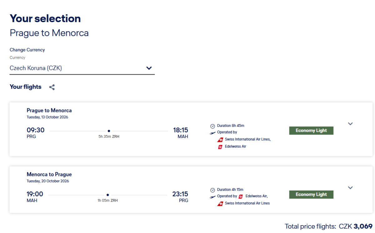 Menorca from Prague during spring, summer and autumn