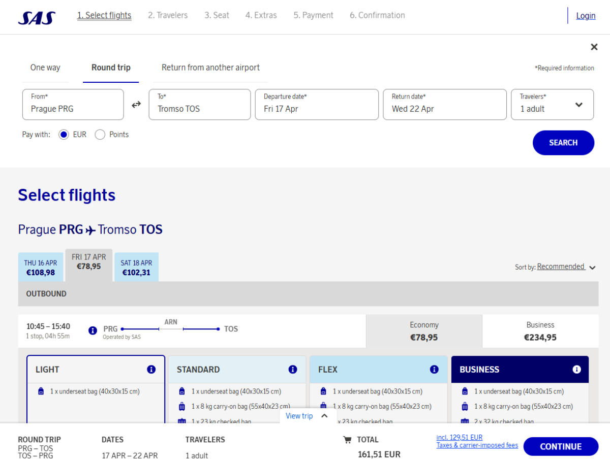 Norwegian Tromsø from Prague in April and May with SAS