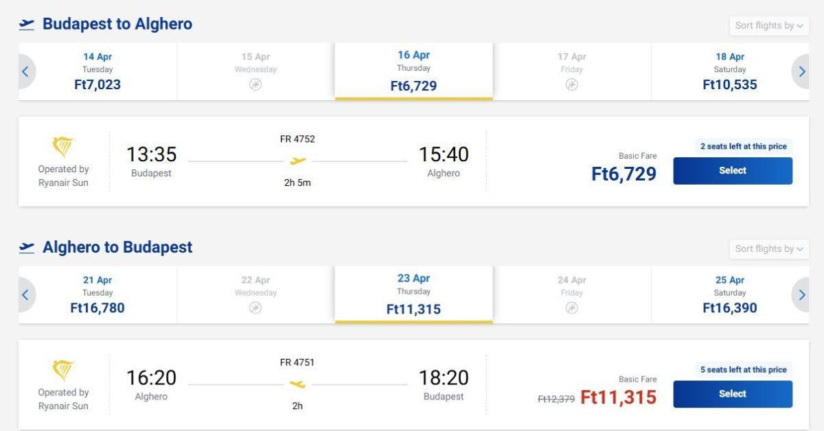 You can also visit Sardinia in spring from Budapest, where Ryanair offers direct flights to Alghero in the north-west of the island.