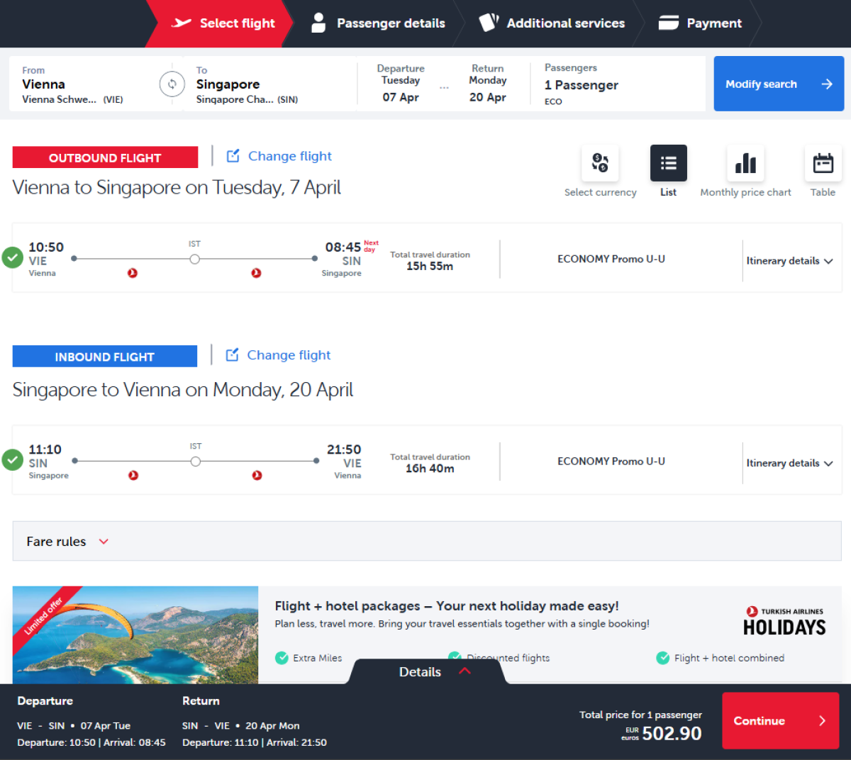 You will be flying with the following airlines: Turkish Airlines