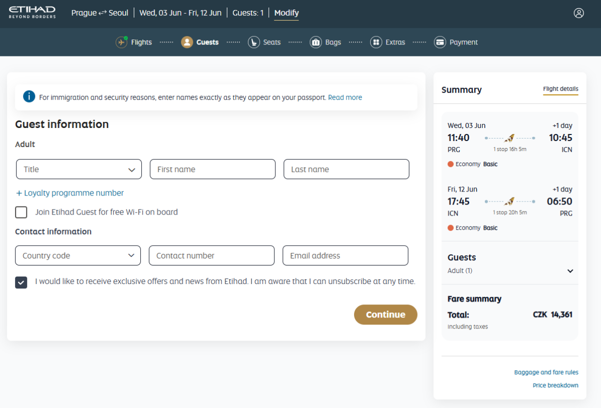 South Korean Seoul from Prague with Etihad Airways until June 2026