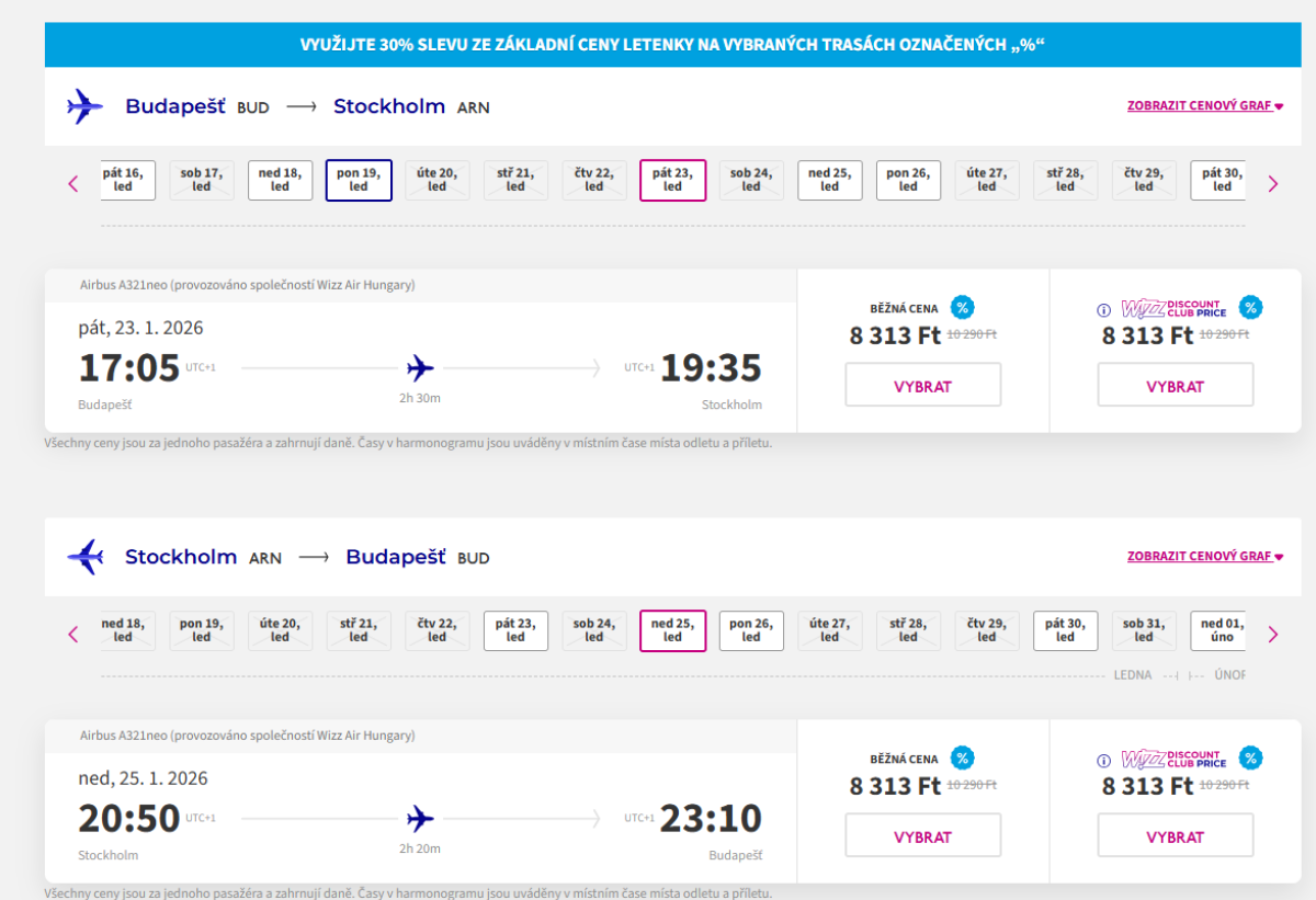 If you're thinking of a short trip north, Wizz Air is currently offering cheap return tickets from Budapest to Stockholm from 16 626 huf - You'll find ideal dates, especially for long weekends from Friday to Sunday.