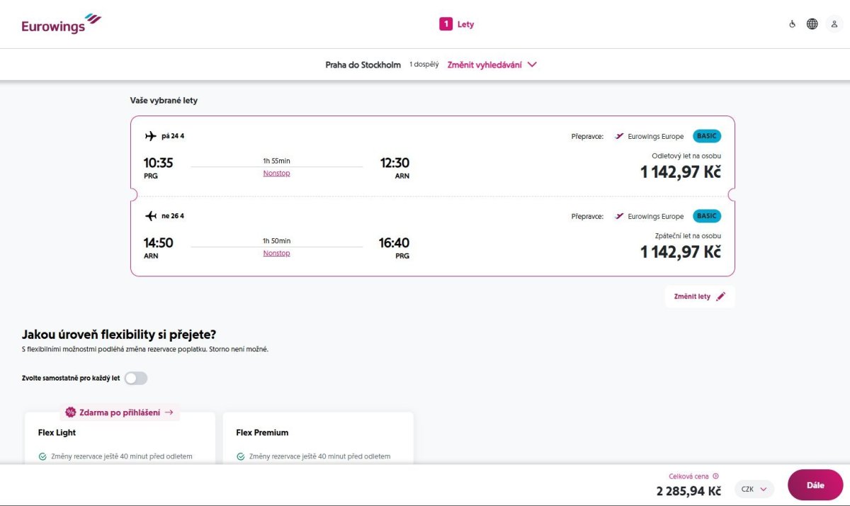 Eurowings has a promotion on return tickets from Prague to Stockholm, valid for dates from March to June. The cheapest tickets are available for 93 eur.
