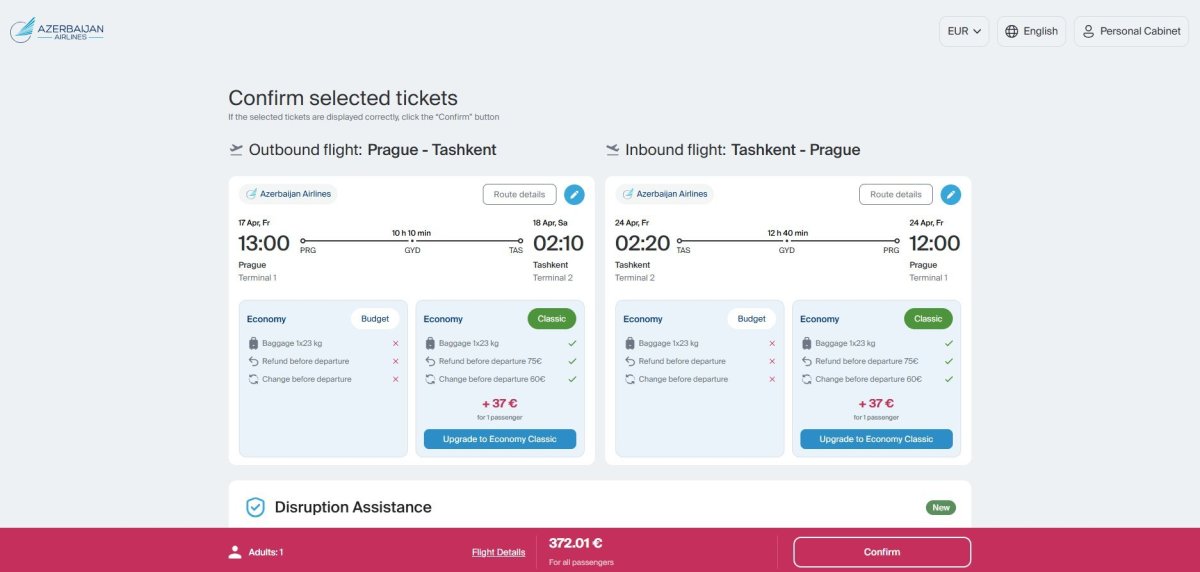 Discount airline tickets from Prague to Uzbekistan are offered by Azerbaijan Airlines.