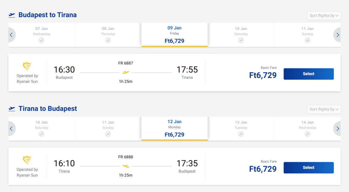 Ryanair is offering several great deals for a long weekend in Tirana departing from Budapest in January. Return tickets can be purchased for 13 458 huf.