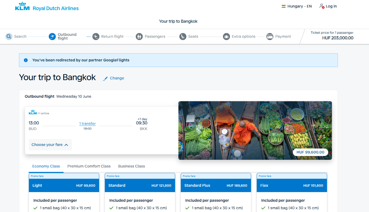 Good value return tickets from Budapest to Bangkok are available from KLM for 203 000 huf.
