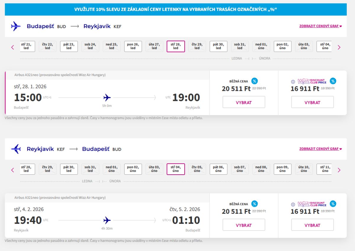 Head to Iceland for the Northern Lights and thermal springs. Wizz Air offers direct flights from Budapest to Reykjavik on several dates in February and March from 41 022 huf.