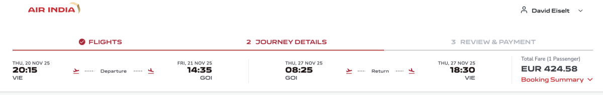 The cheapest tickets can be purchased directly from the airline's website along with free registration for the Maharaja Club loyalty programme, specifically for 424 eur.